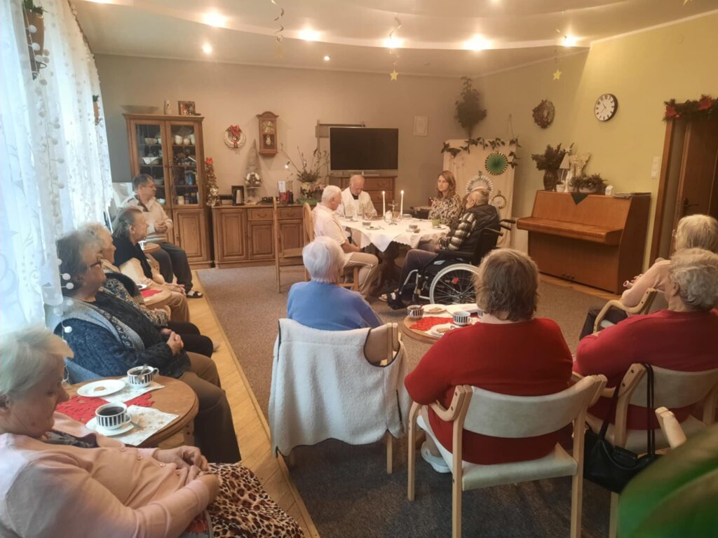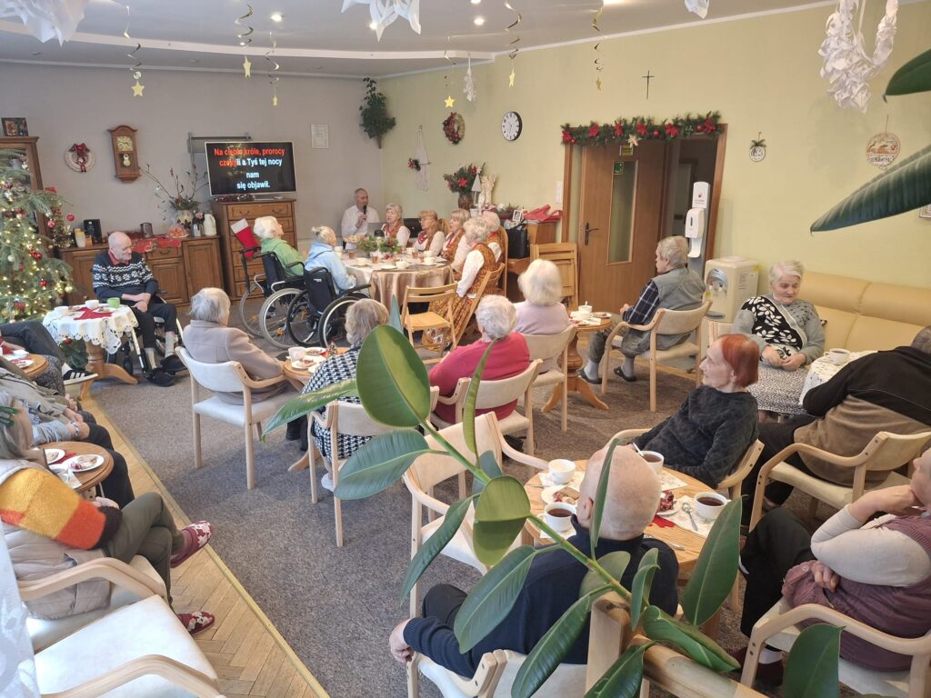 Tradycyjnie jak co roku Seniorzy DPS „Ostoja” wraz z naszym zaprzyjaźnionym Zespołem „Łużyczanie”, przy muzyce Pana Ździsława Szpaka śpiewali wspólnie kolędy przy choince.
