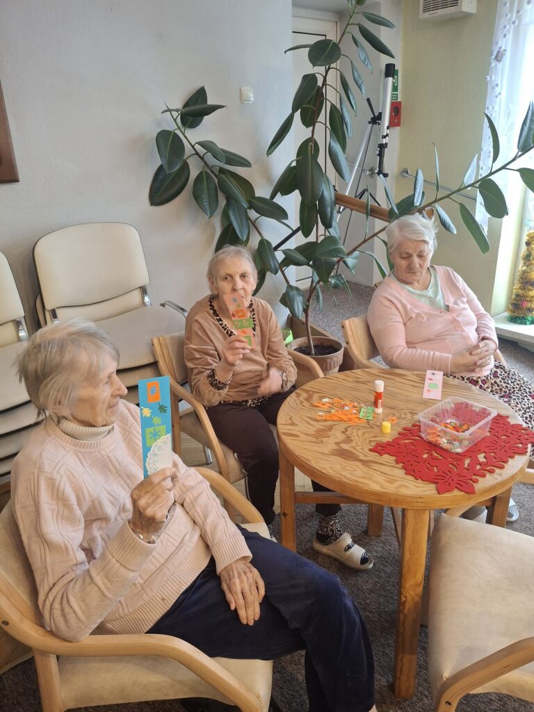 Seniorzy na zajęciach terapii zajęciowej mieli okazję wykazać się kreatywnością i pobudzić swoją wyobraźnię wykonując kolorowe zakładki do książek. Był to mile spędzony czas przy wspólnej pracy.